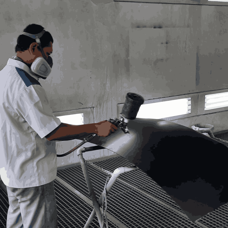 Kami mengecat menggunakan teknik semprot dengan cat berkualitas tinggi. Proses ini dilakukan di ruang pengecatan khusus agar bebas debu dan menghasilkan lapisan cat yang merata, mengilap, dan tahan lama.